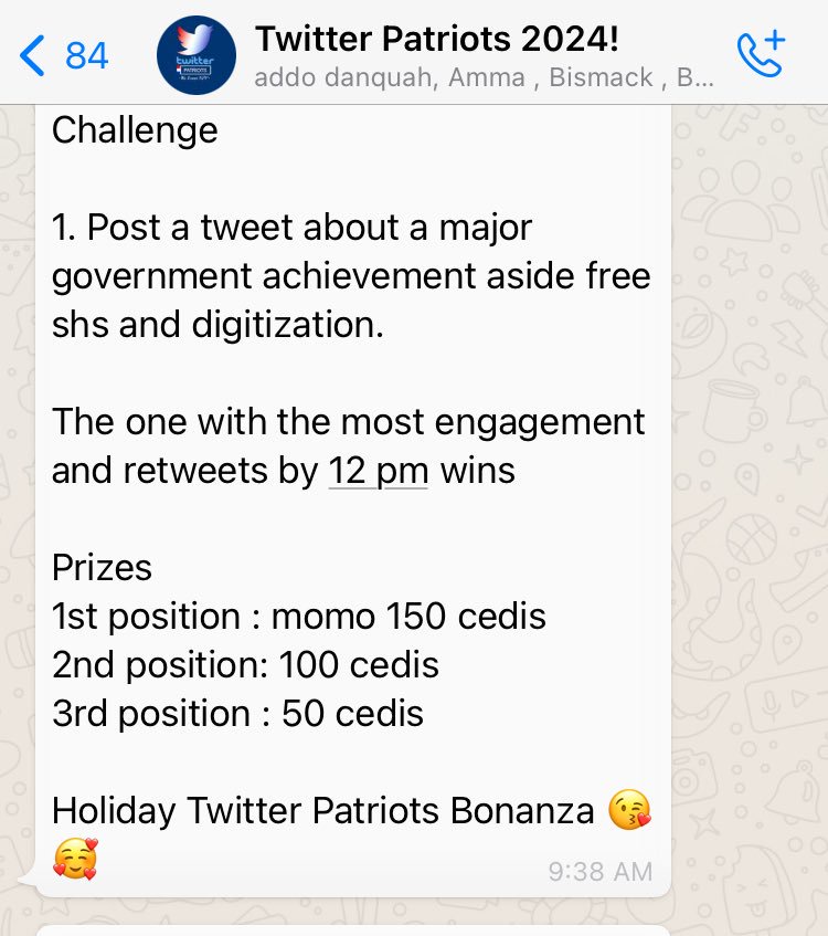 According to this individual, they belong to a WhatsApp group called Twitter Patriots 2024 and that was where they planned how to bring the hashtag #FixTheCountry down.