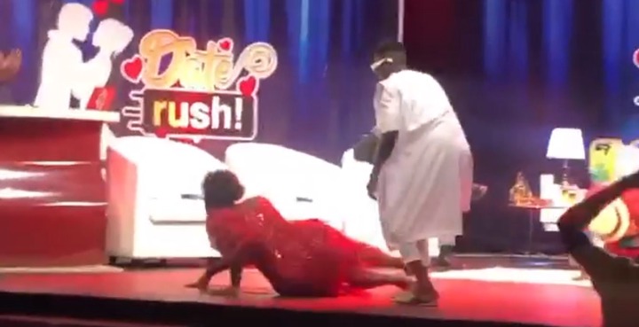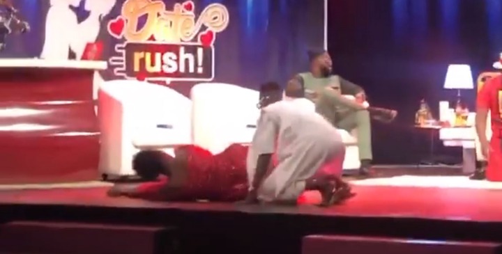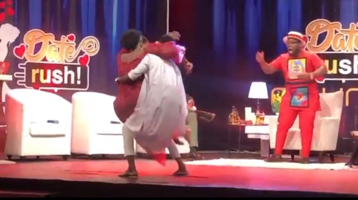 But unfortunately, Shemima fell from his hand and they both landed on the ground. They both had to get up and the entire auditorium bounced into laughter. Giovani, the host of the program could not hold on but had to laugh out loud.