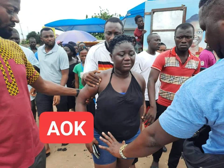 Kate Boateng is a notorious mobile money fraudster in Daban in the Nhiaeso constituency in Ashanti Region who was caught after scamming a mobile money vendor of his money. She was dragged and beaten mercilessly by angry mob in Daban until his angel came to deliver her.