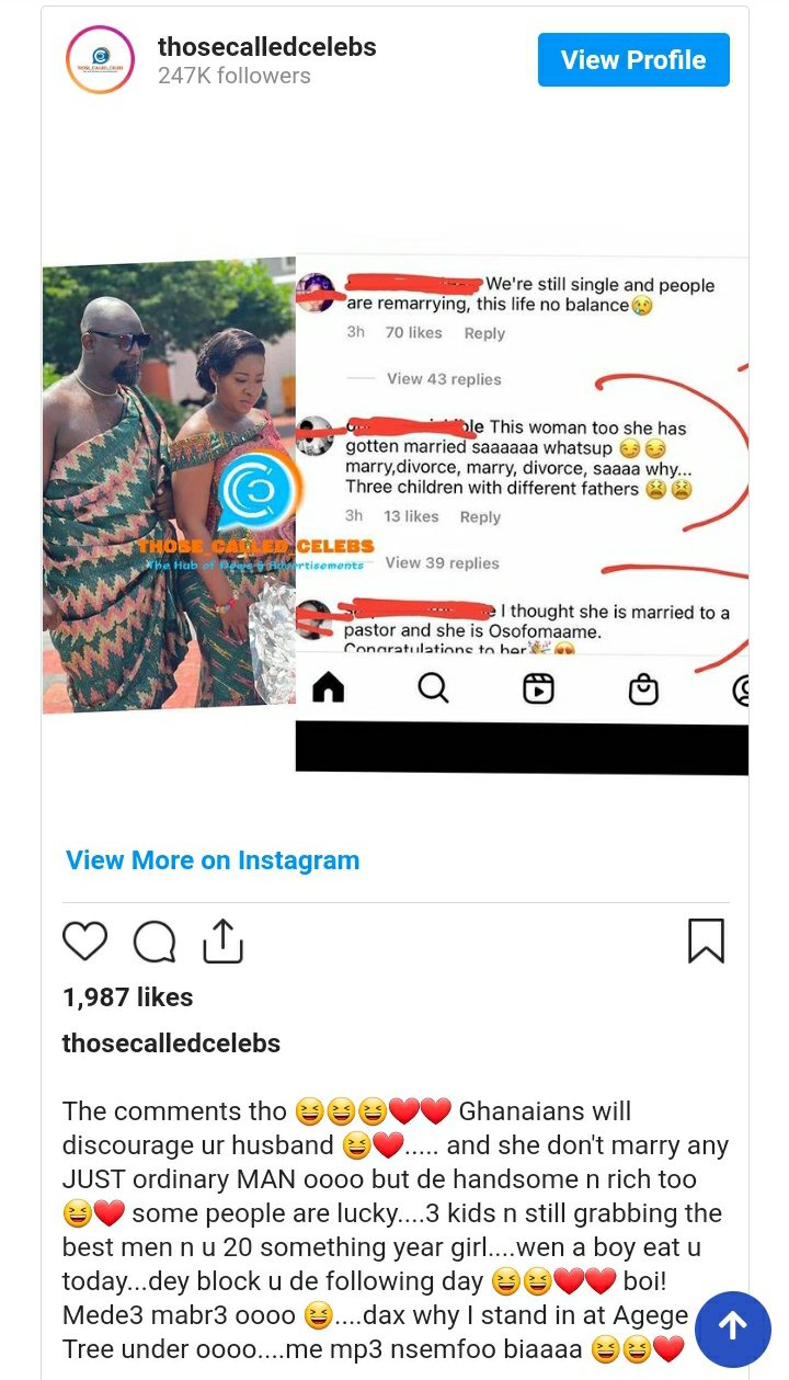 Fast forward after the news, critical thinking netizens have chastised heavily actress Portia Asare Boateng for marrying again after failure to keep her past relationships.