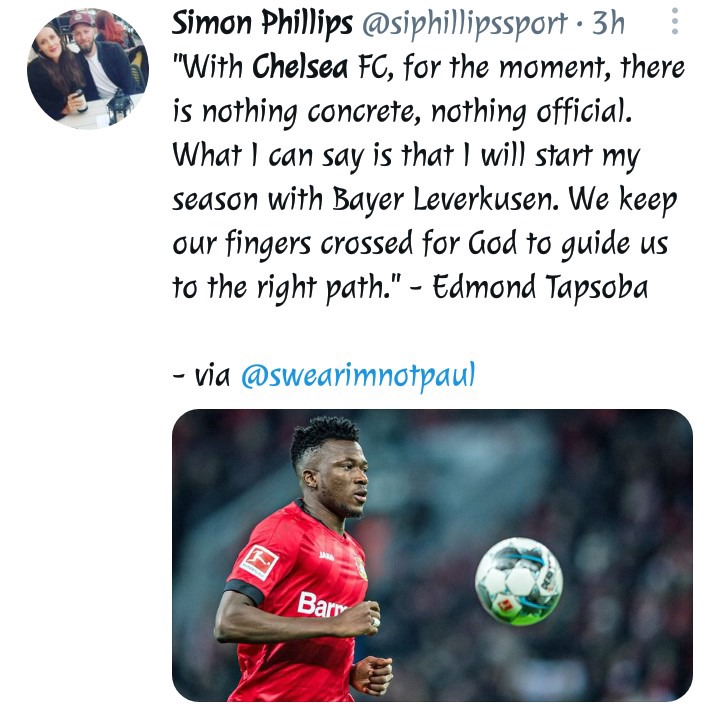 Bayer Leverkusen left-back Emmanuel Topsoba earlier on said that he is delighted to be linked with a move to Stamford Bridge but at the moment all his focus on his current club. He said this after he was asked by a journalist how he felt about being linked to a big club such as Chelsea.