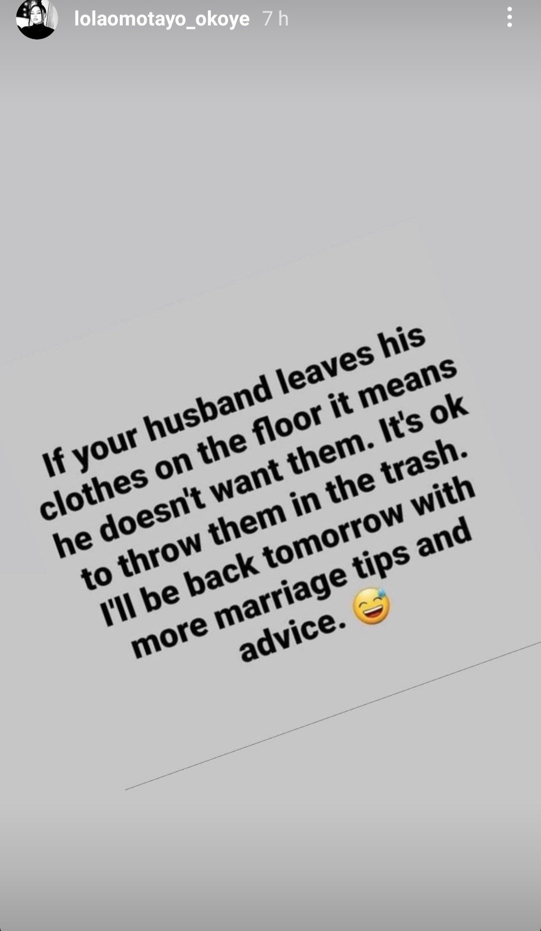 “I’ll be back tomorrow with more marriage tips and advice,” she added.