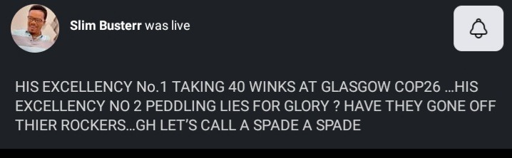 Due to how strange his submission was, his post kept Trending. To him, as Nana Addo went on a winking spree (sleeping) during the meeting at Glasgow. And while the President was blinking, His Excellency Number 2 ( Bawumia) was peddling falsehood in an organised forum.