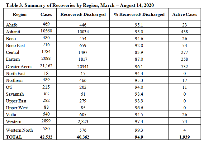According to the Ghana Health Service (GHS), 40,362 persons have recovered/discharged from the virus.