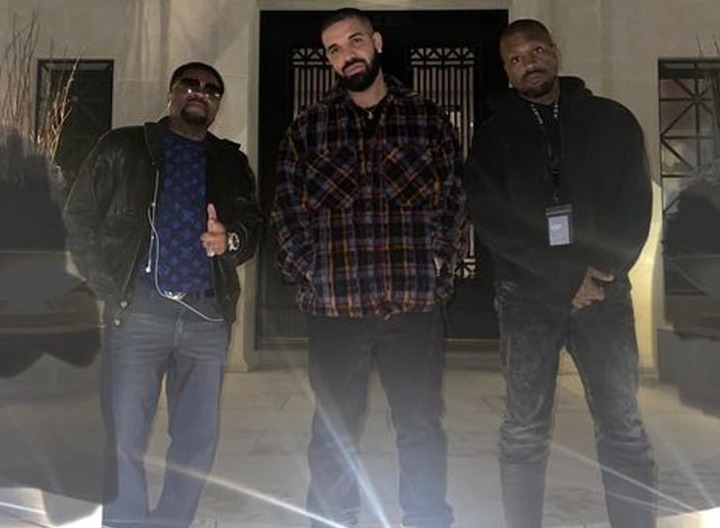 Kanye additionally posted a photograph of himself, Drake, and music advertiser J. Sovereign on Instagram with a “dove” emoticon to underscore the harmony made between them.
