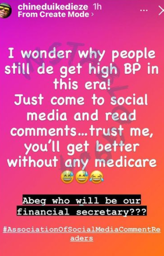 In a recent update on his Instagram story, Chinedu Ikedieze wondered why people still get high blood pressure in this era.