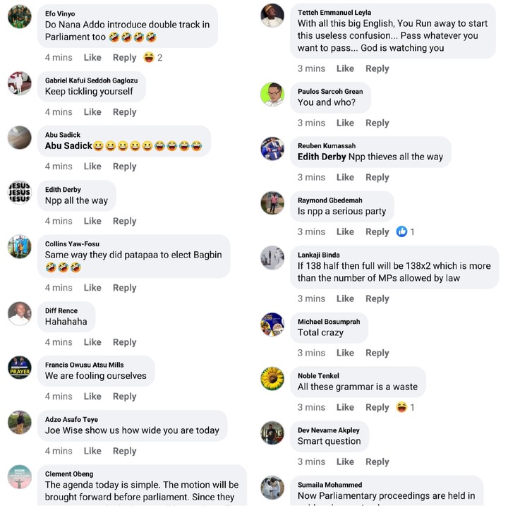The coming days will be interesting as Ghanaians await to see how this tense political situation will be solved. Alban Bagbin is currently out of the country and is expected to spend about 2 weeks on some medical examinations. Check out reactions from the official Parliament House Facebook page.