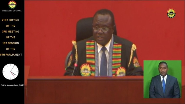 Today, Tuesday, November 30, 2021, there was no presence of the Minority in the house of Parliament. Only the Majority side were in the chamber with Hon. Joseph Osei Owusu sitting in the chair as Speaker. The sitting Speaker was prompted by Osei Kyei Mensah about the illegality last Friday when 137 MPs voted to reject the budget. The 1st Deputy Speaker then called to check the numbers in Parliament and mentioned that they were 138 with he himself as a member.