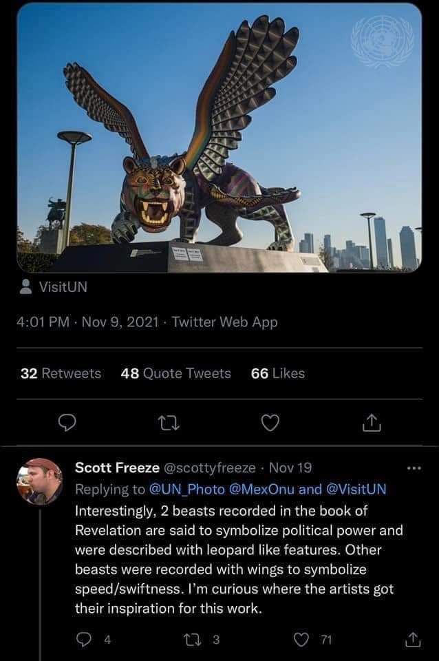 During the current times of taking down statues of historical figures due to the woke crowd, the United Nations has placed a giant statue in New York that resembles an end-times “beast” from the New Testament’s book of Revelation.