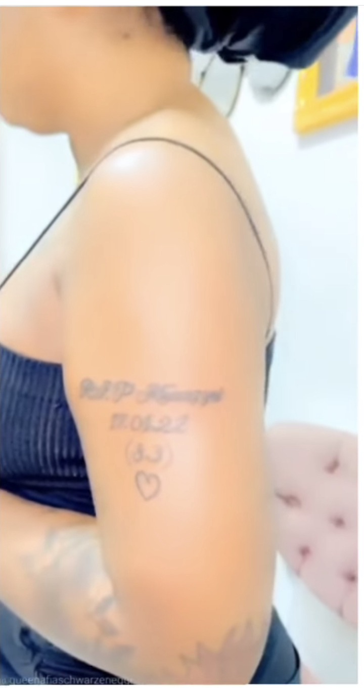 In a video that has been seen online, you would realize that Afia has had her father’s name tattooed on her arm to keep his memories with her. The writings look like it was freshly done.