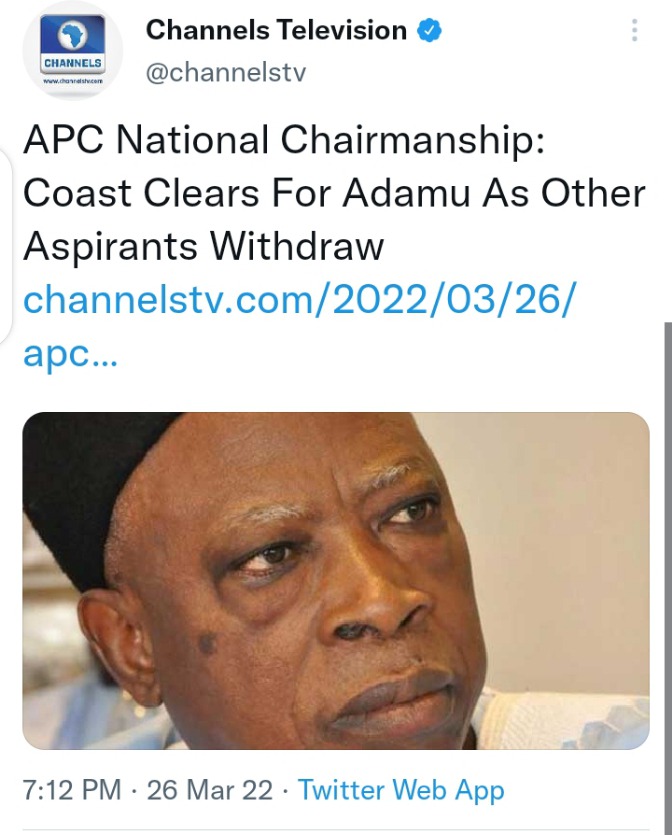 The coast appears to be clear for Senator Abdullahi Adamu to become the next national chairman of the All Progressives Congress (APC) as all his co-contenders have withdrawn from the race.