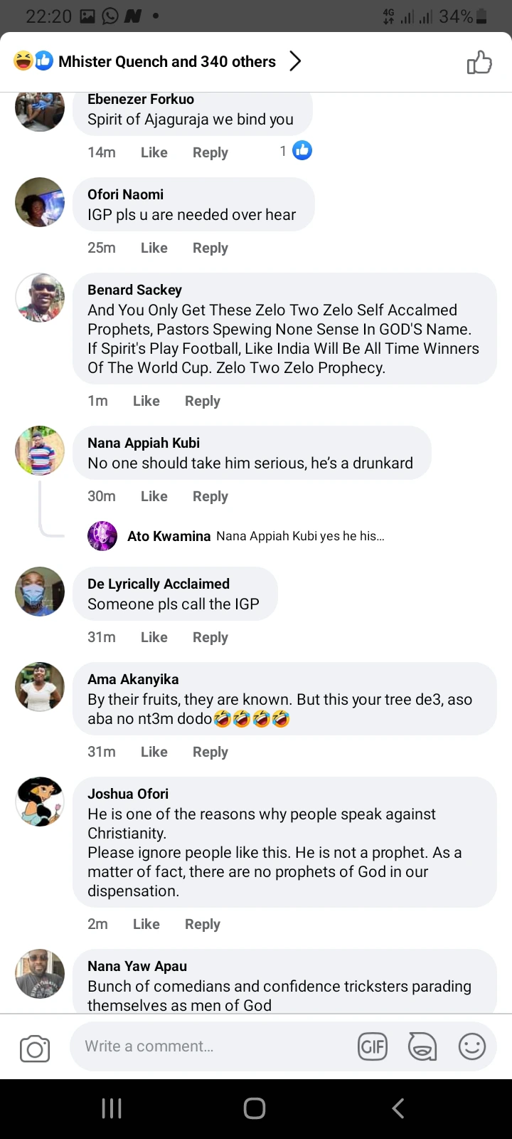 ” Where is Ogya Nyame ? We’re waiting for you. Your cane is still soaked in water. Why should you lie to us ? Anyway, I Don’t blame you because majority of you guys are fake ” One Clinton Atta Akrofi trolled the Prophet on Facebook.